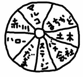 | 結局はかくれんぼの事です 道路に上図のように書きます(場所は適当に) 五メートルくらい手前から石を投げ 入った所まで行って来なければなりません 一番遅かった人が鬼になります 中心に入った人は、何処にも行かなくてよい 円から外れた人は1番遠い所に行きます 戻ったら自分の石を持って隠れるので 最後の人は自分の石しか残ってなく 自分が鬼だということがわかります 鬼は一人見つける度に、円の中心を踏みます 鬼が離れている隙に、誰かが中心に石を置くと もう一度始めからやり直しになります 鬼だけが一番遠くに行かなければなりません 他の人は何処にも行かず、そのまま隠れます |